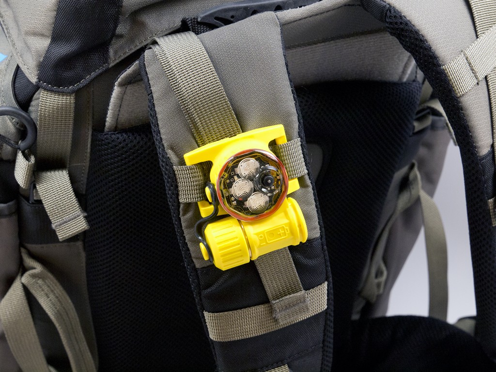 The Neptune can be attached to PALS webbing, belts, or gear by using its integrated strap attachment points or wrist mounted with the included strap.