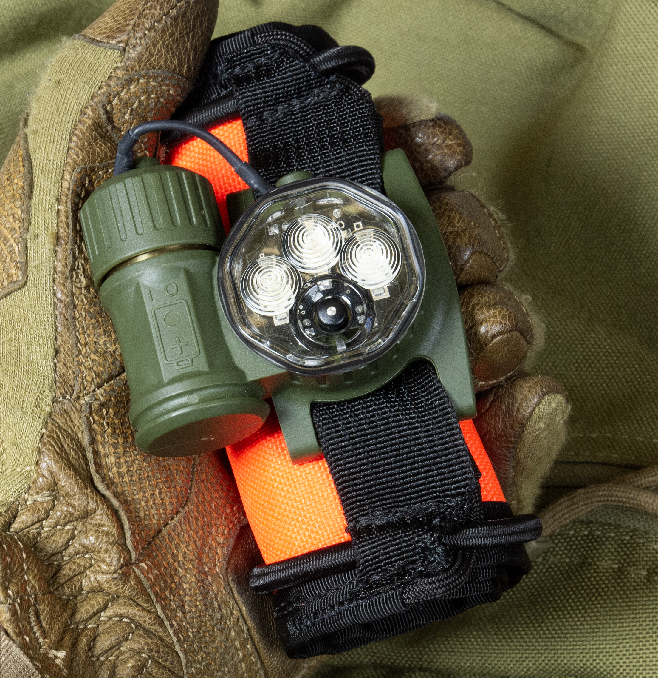 The LMM utilizes the combat-proven Neptune™ Multipurpose Beacon. Powered by a CR123 battery, the Neptune™ offers adjustable brightness in constant-on NIR, visible white, and blue modes, as well as flashing NIR, visible white, and blue signaling.